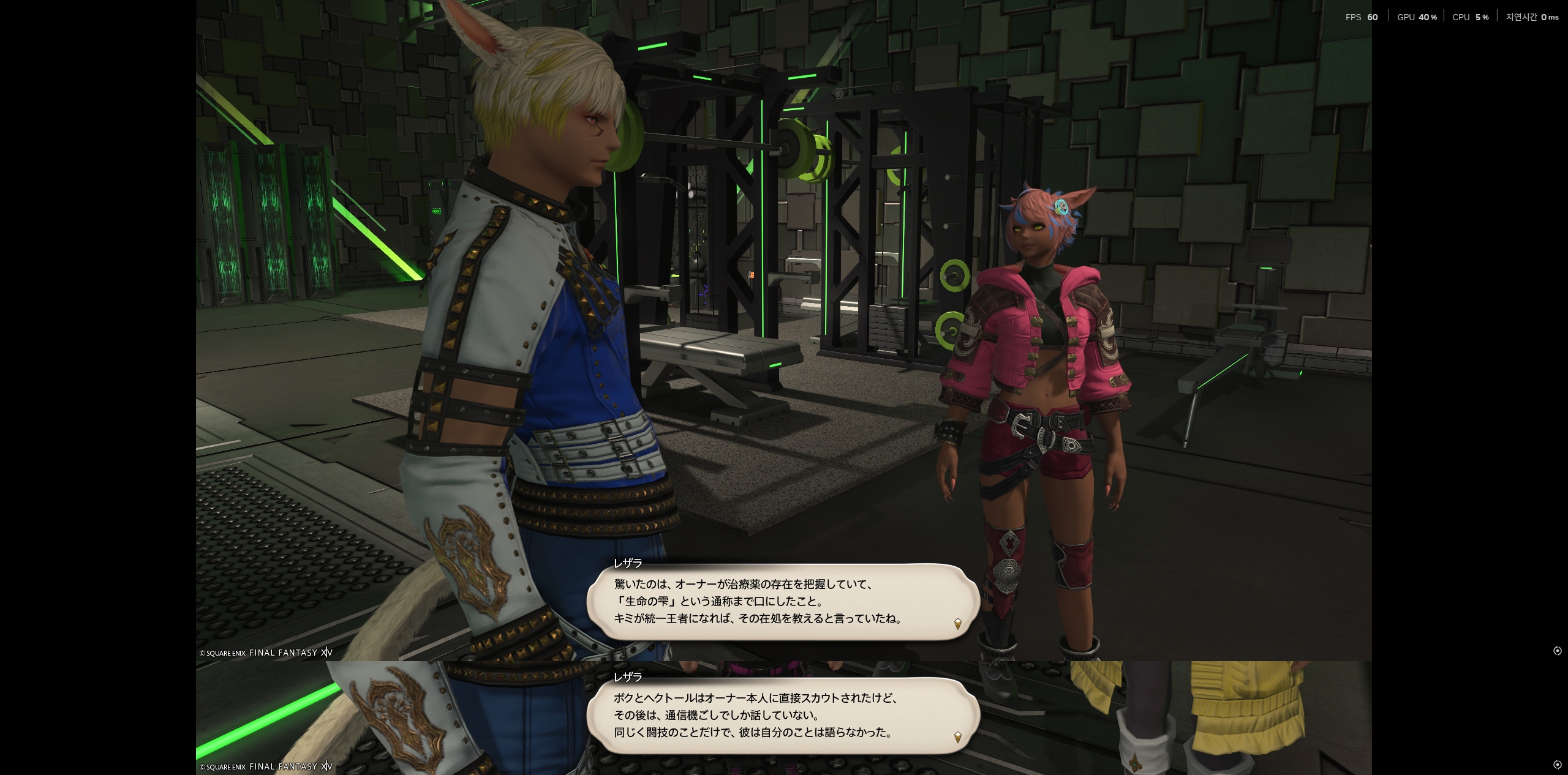 레자라: "내가 놀란 건, 오너가 치료약의 존재를 알고 있고, "생명의 물방울"이라는 이름까지 붙였다는 거야. 네가 우승한다면, 그것의 거취에 대해 알려준다고 했었지."